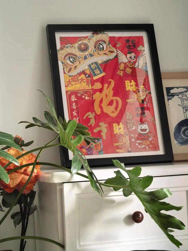 新年想装饰家,根本就不用去买装饰画,那些剩下来的红包,本身就是现成的“节日素材”。
